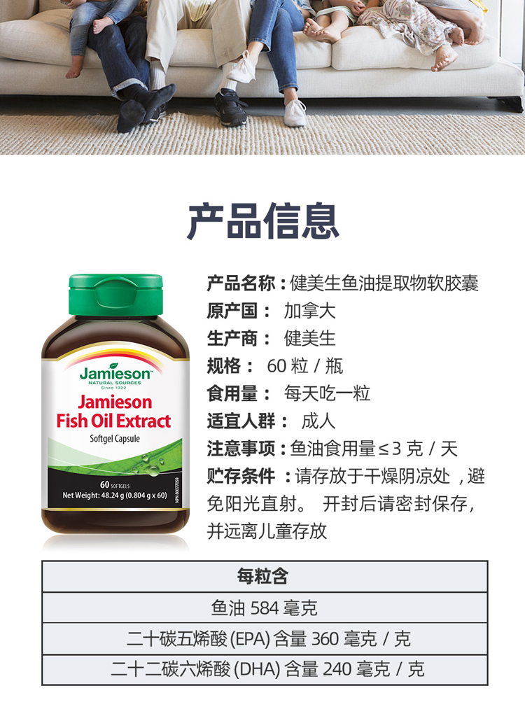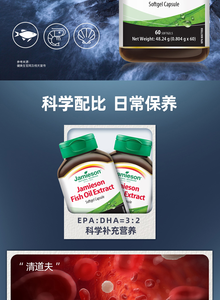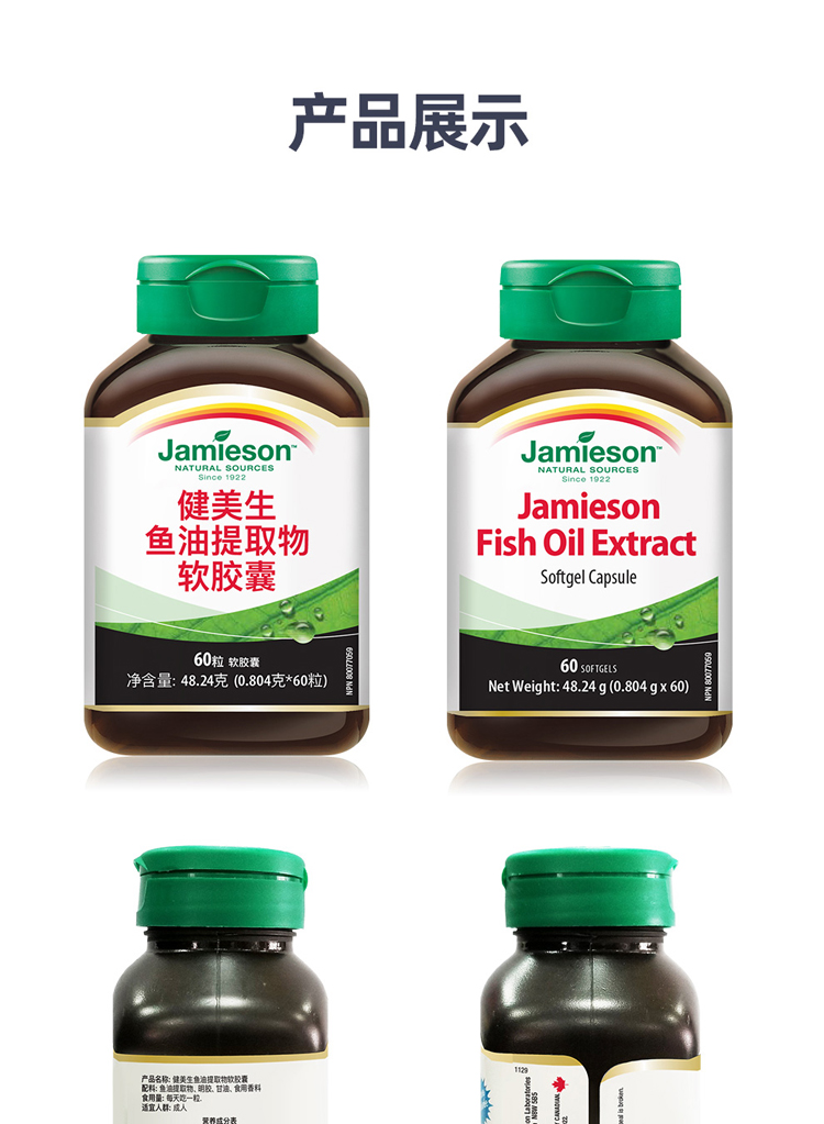 jamieson健美生进口深海鱼油软胶囊omega3DHAEPA中老年鱼肝油60粒