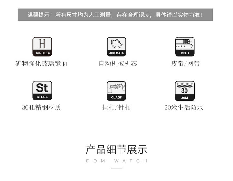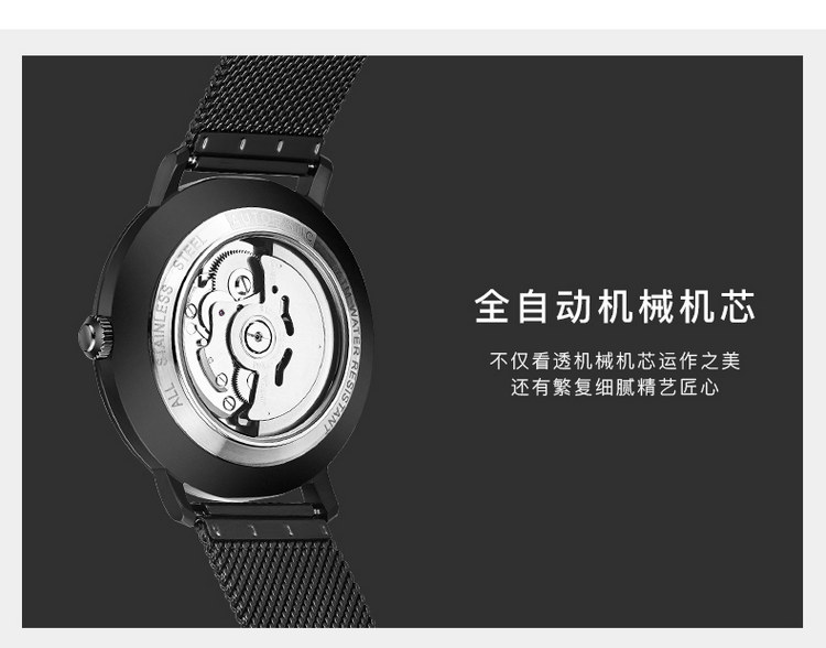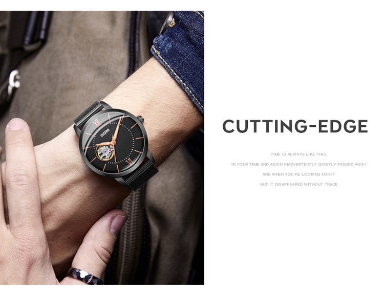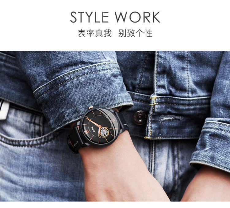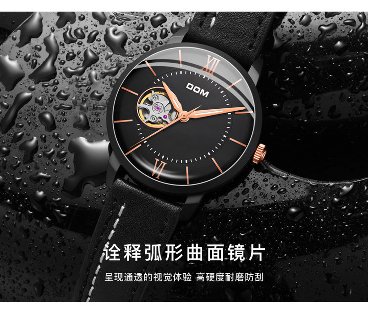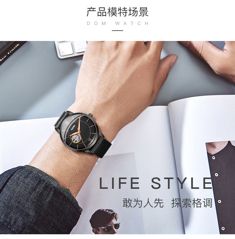多姆(DOM)手表男19年新品全自动机械表M-8120BK-1M黑盘黑网带