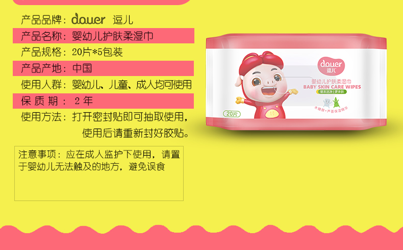 逗儿婴幼儿护肤柔湿巾 20片/包(2包装)