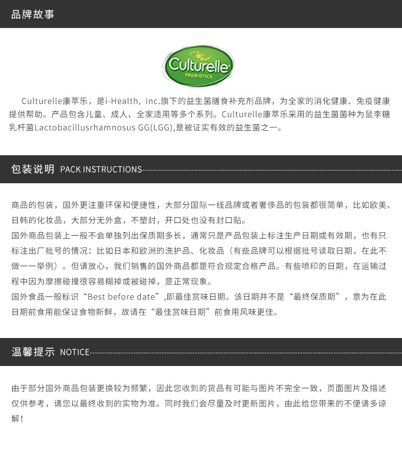 【买一送一活动时间到9月30号】【香港直邮】美国Culturelle康萃乐婴幼儿肠胃补助益生菌粉30小袋