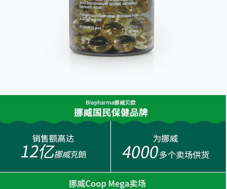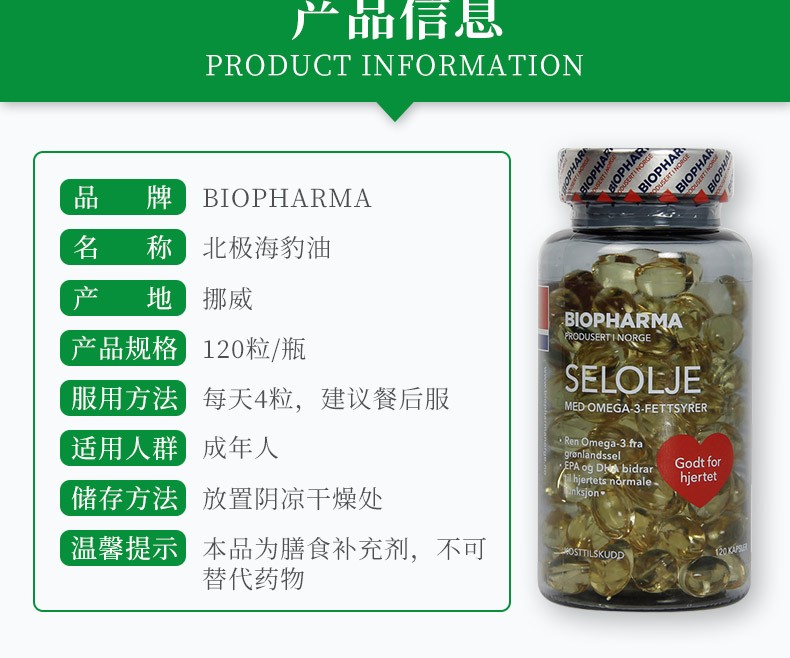 挪威Biopharma海豹油软胶囊非鱼油omega3挪威原装进口120粒