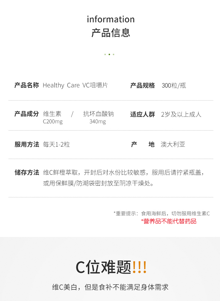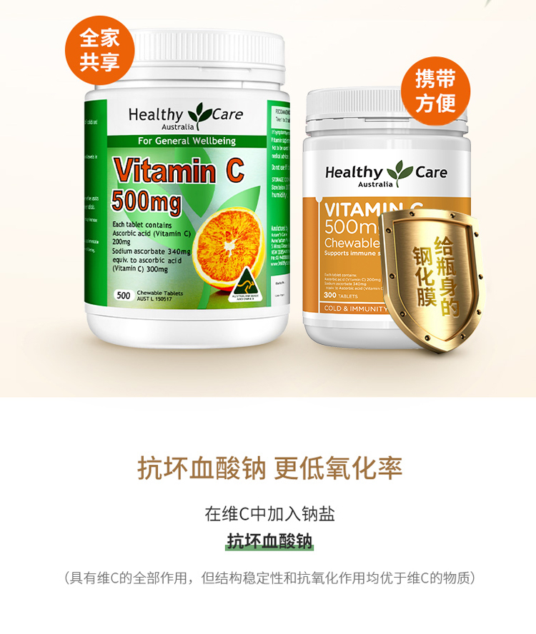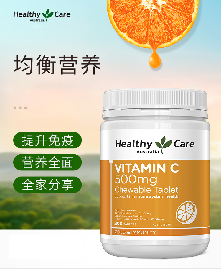 澳洲Healthy Care 维生素C咀嚼片500mg 300s
