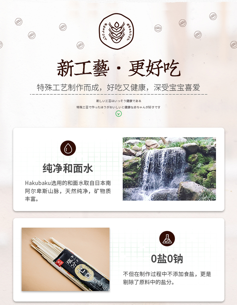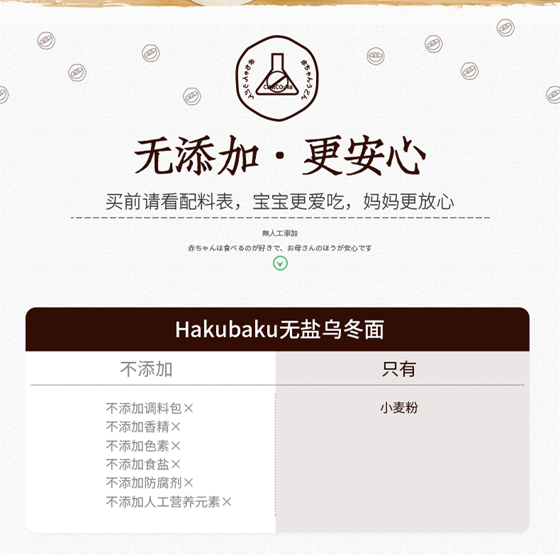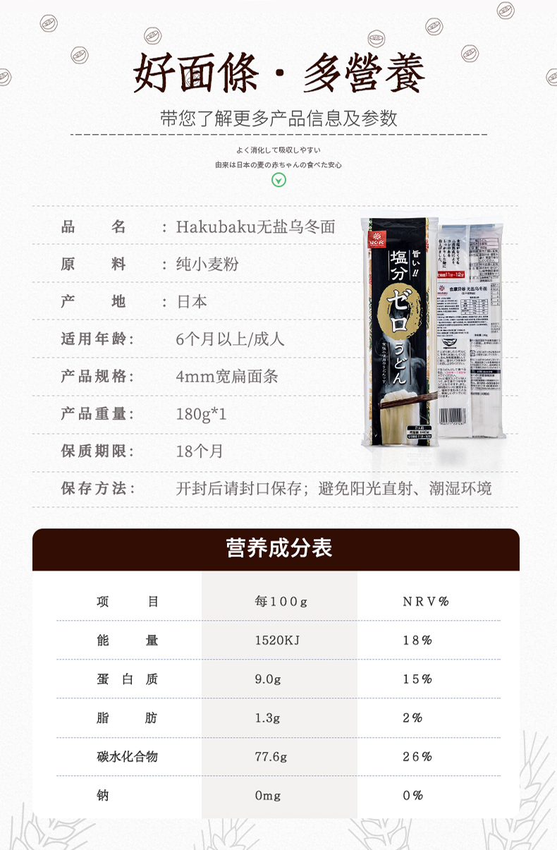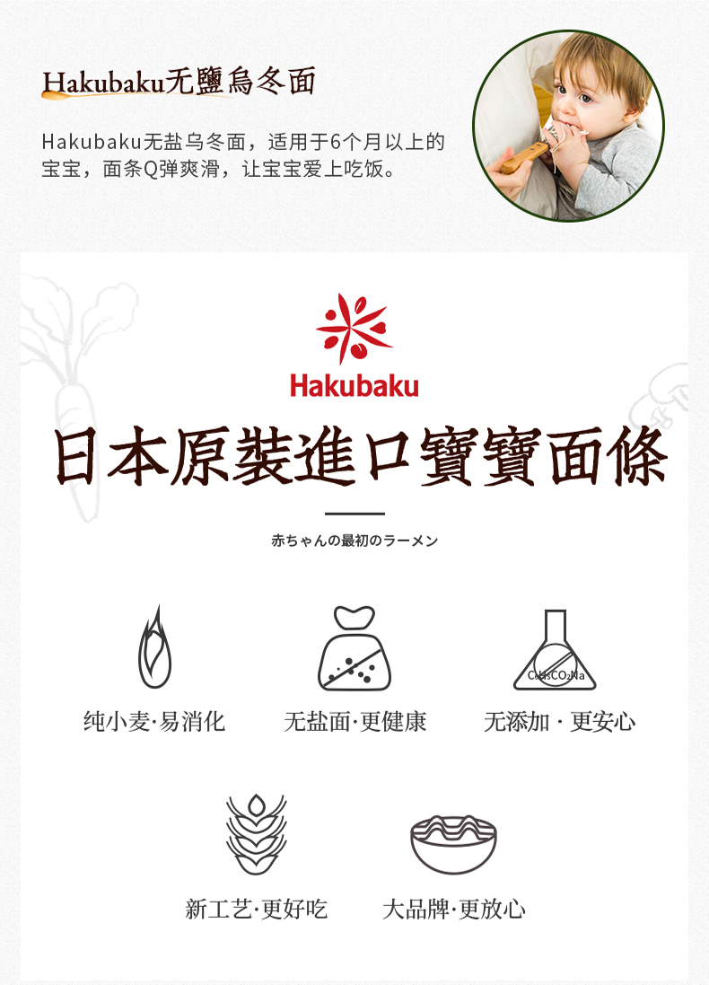 日本黄金大地Hakubaku婴儿宝宝面条无盐乌冬面180g/黑色
