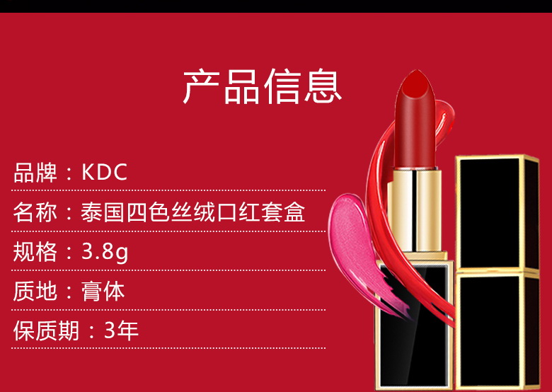 泰国kdc丝绒口红套盒(斩男色+范爷橘+玫红色+豆沙色)