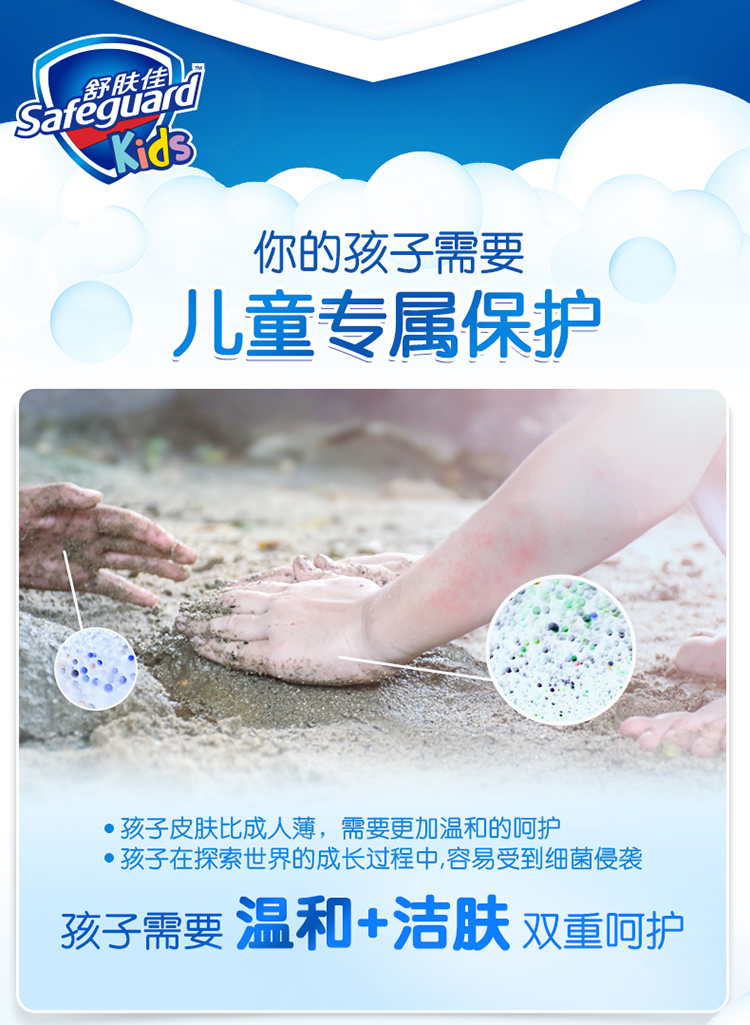 舒肤佳Safeguard儿童健康泡泡沐浴露清新小蓝500ml