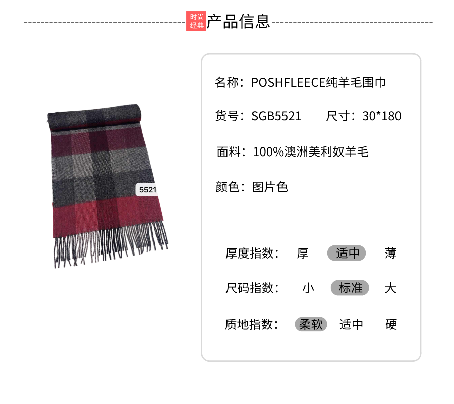 【授权商品】Posh Fleece 澳洲美利奴纯羊毛围巾 SGB5521纯羊毛围巾30*180