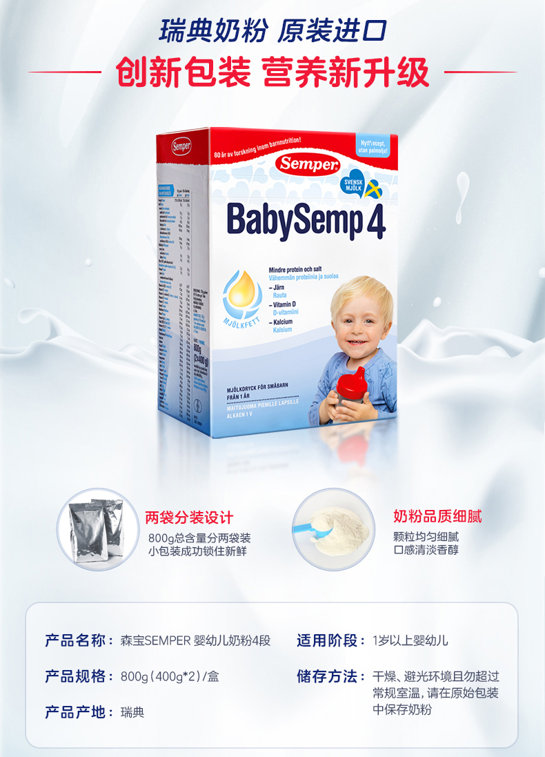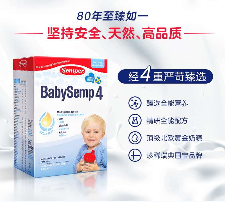 您所在的位置:首页 > 母婴用品  > 奶粉 > 婴幼奶粉  > 瑞典semper森宝800g 1岁以上-4段新包装