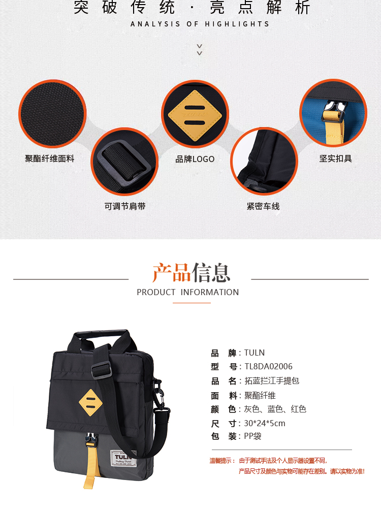 拓蓝(TULN)单肩包男包休闲运动斜挎包时尚潮流竖款手提包旅行背包 灰色