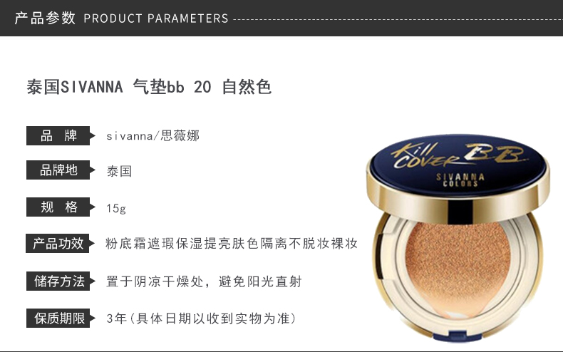 泰国 sivanna清透无瑕气垫BB霜 02#自然白