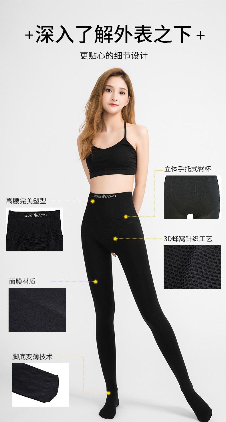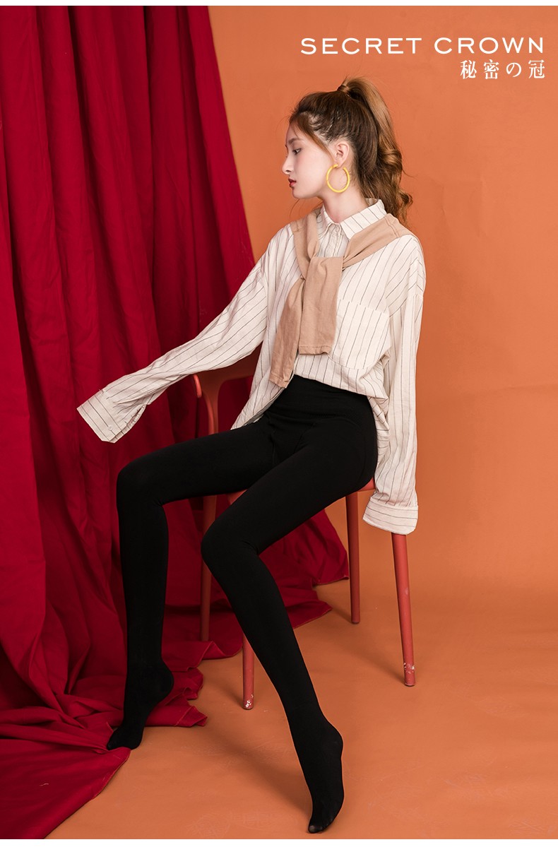 韩国秘密之冠800D连脚瘦腿袜 黑色