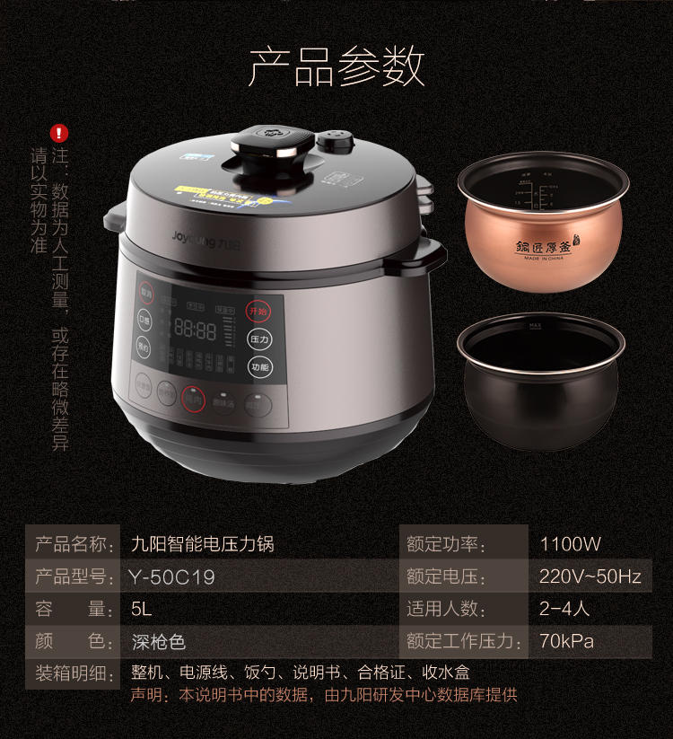 您所在的位置:首页 > 家用电器  > 厨房小电 > 电压力锅  > 【授权商品】九阳Y-50C19电压力锅高压锅双胆智能预约家用官方多功能饭煲5L