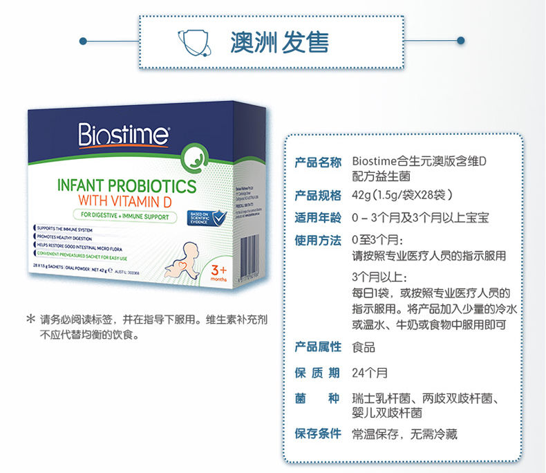 澳大利亚版合生元Biostime婴幼儿童益生菌+VD冲剂 1.5g*28袋