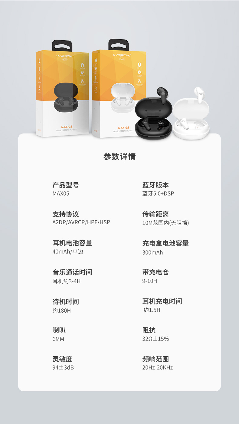 【授权商品】中国沃品(WOPOW)精品系列真无线蓝牙耳机MAX05 黑色