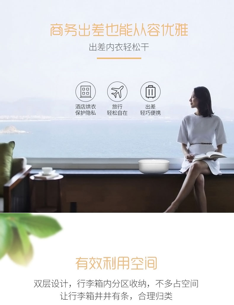 迷你干衣机果丁家用烘干旅行出差便携内衣消毒杀菌收纳干衣盒 粉色