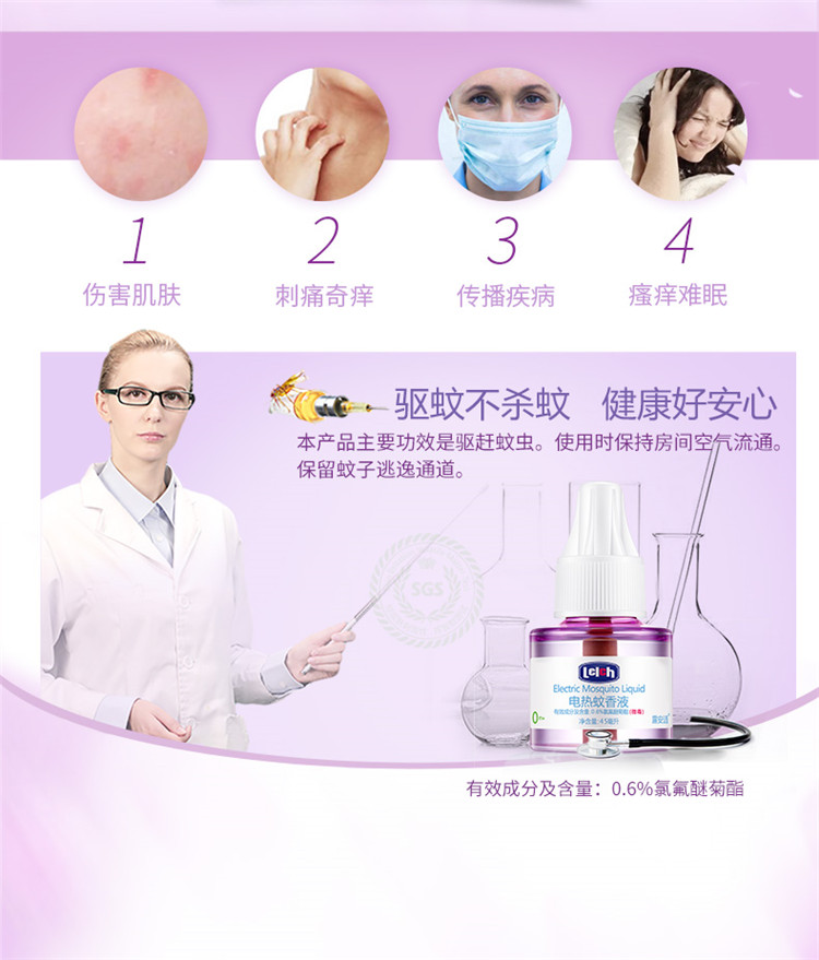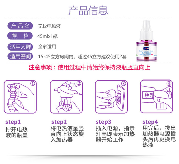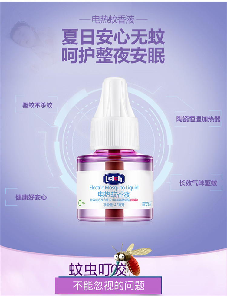 露安适(Lelch)电热蚊香液45ml无味婴儿孕妇家用驱蚊液防蚊灭蚊液补充装不含加热器