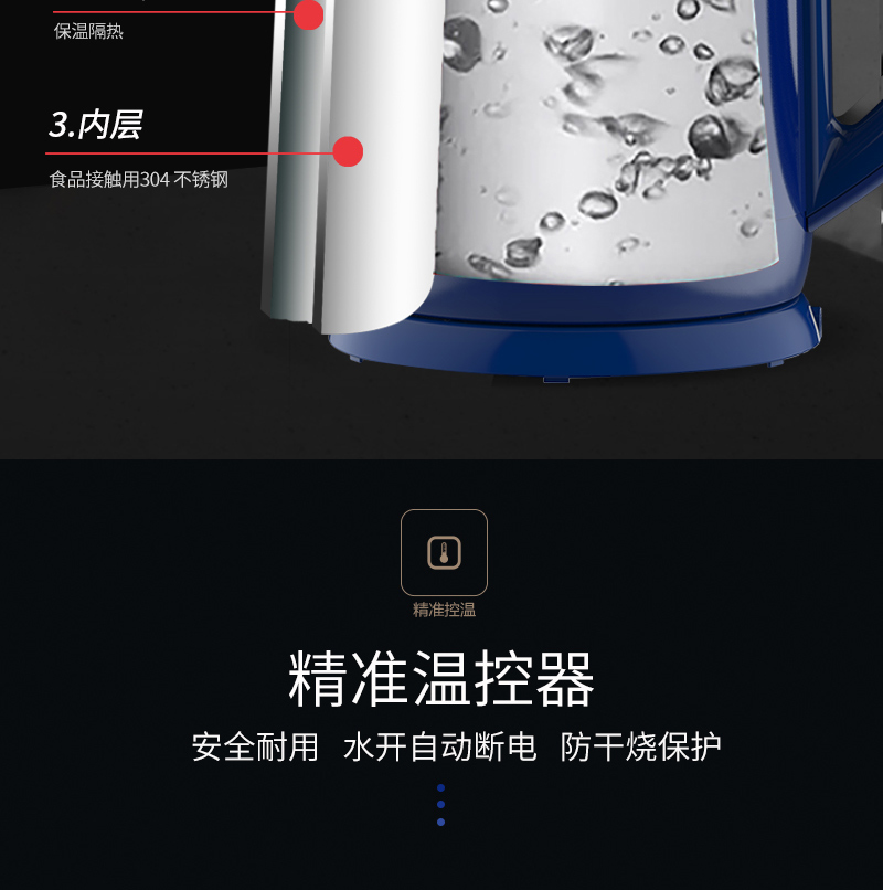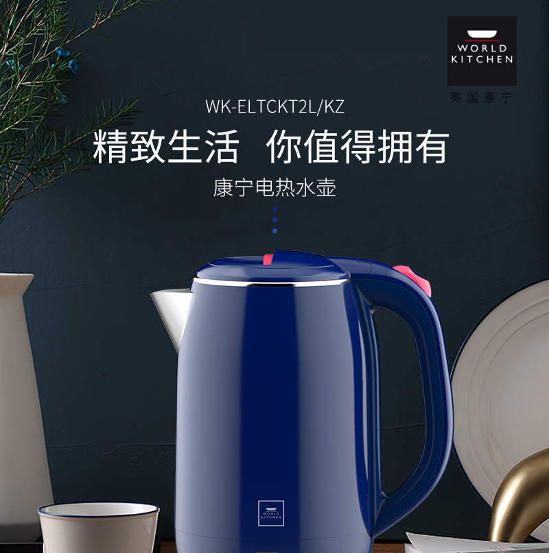 【授权商品】美国康宁WK-ELTCKT2L/KZ 电热水壶双层防烫电水壶水壶2.0L大容量