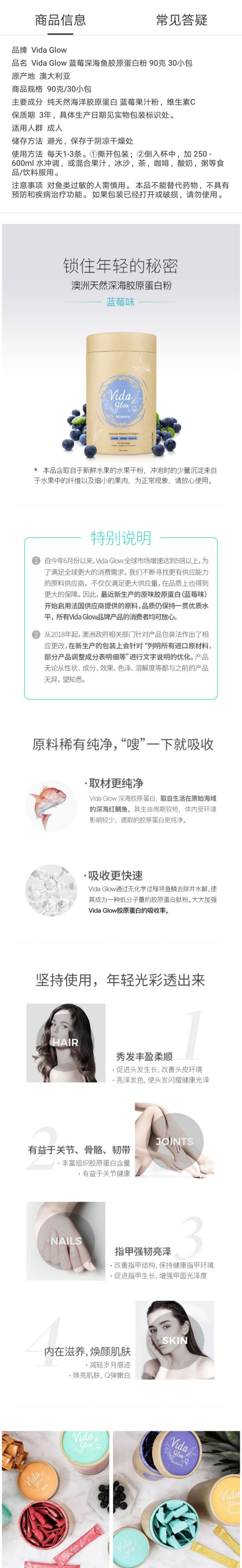 澳洲 Vida Glow蓝莓味深海鱼油胶原蛋白粉(90克 30小包)