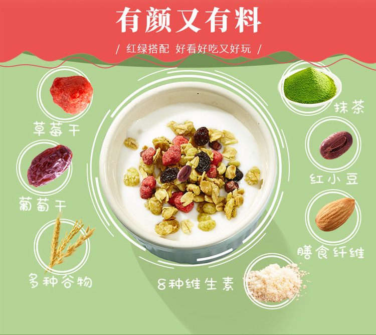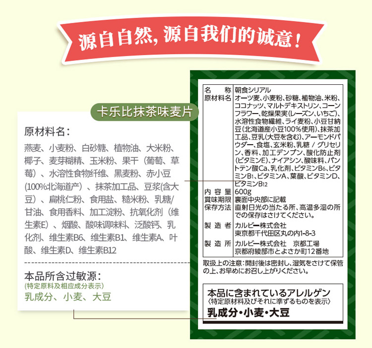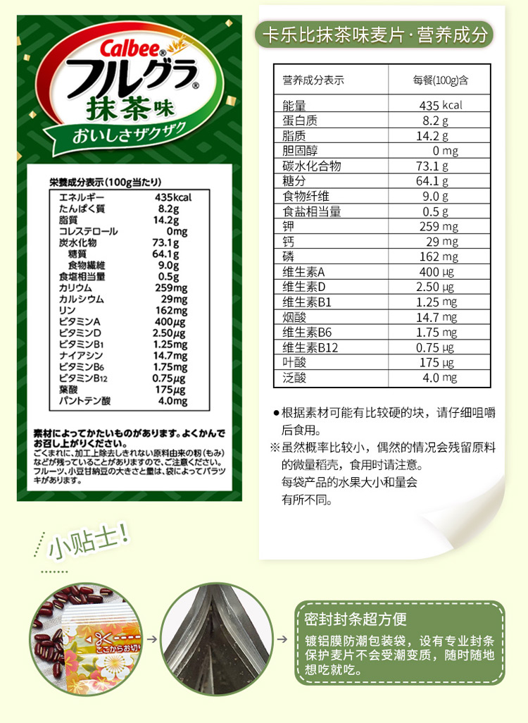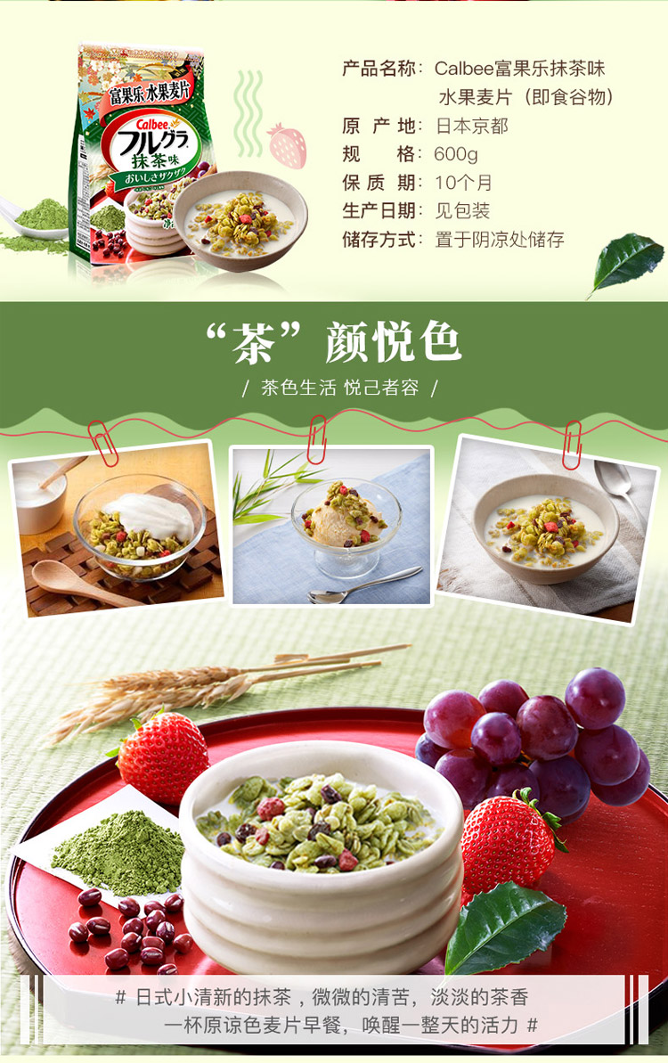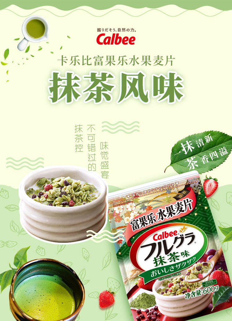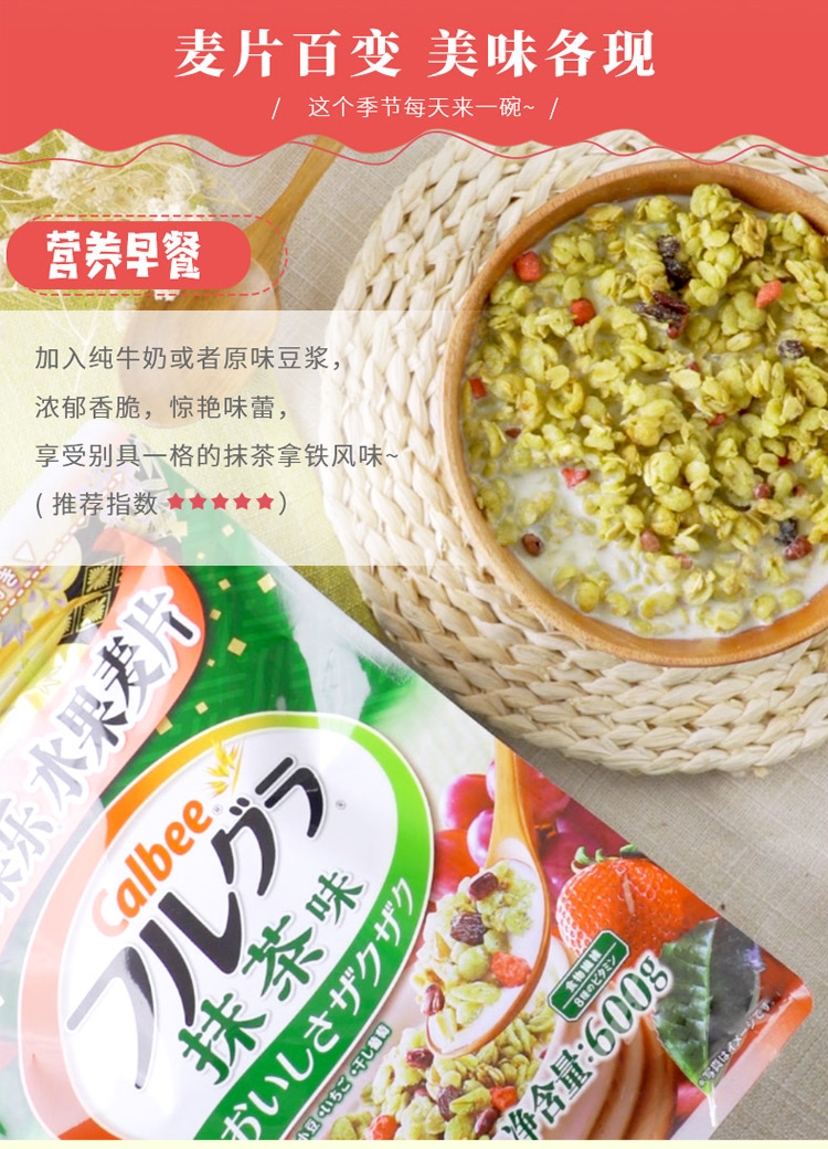 日本进口麦片 卡乐比calbee水果燕麦片抹茶味麦片600g