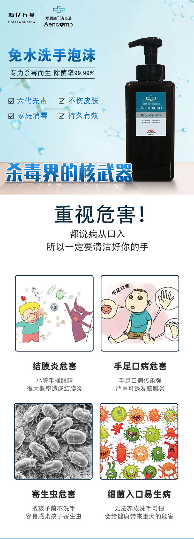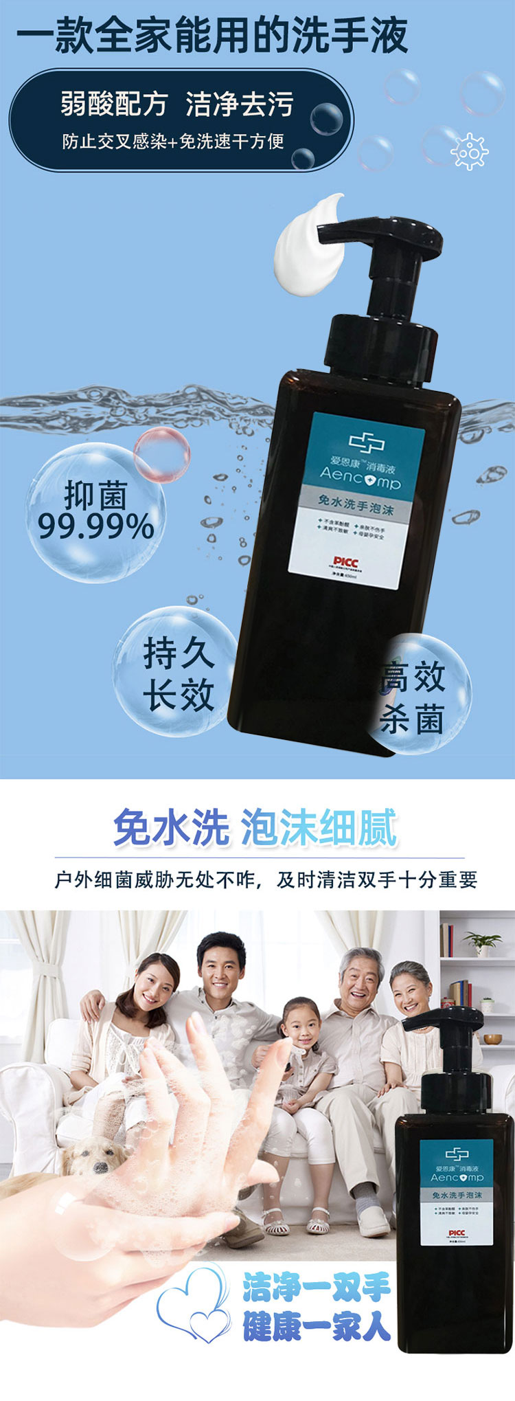 爱恩康除菌杀毒消毒免水洗洗手液泡沫650ML/瓶必抢