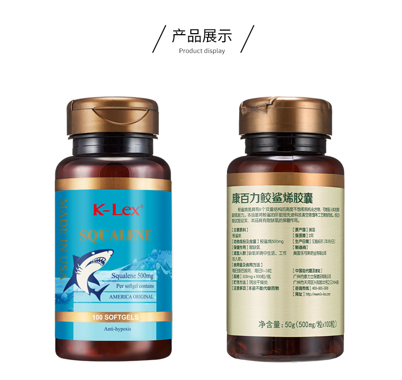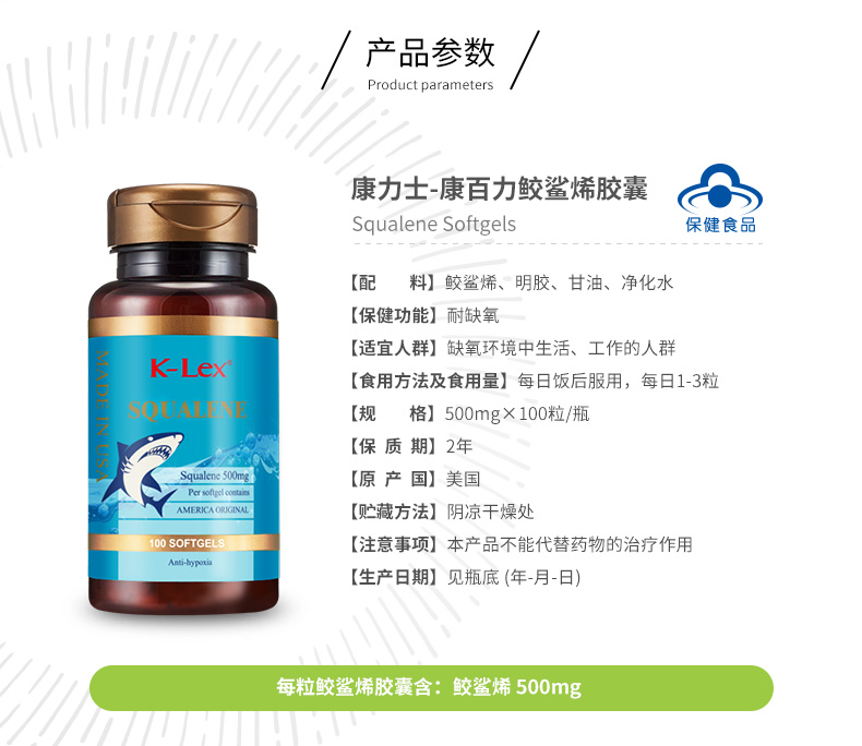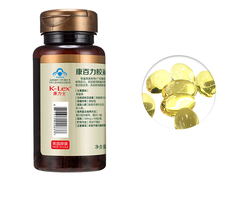 康力士-康百力鲛鲨烯胶囊100粒 美国原瓶原装进口