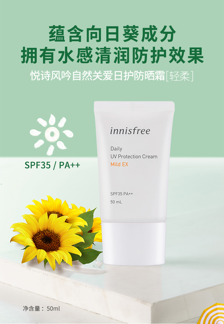 您所在的位置:首页 > 美妆护肤  > 面部护肤 > 防晒  > 【一般贸易】Innisfree/悦诗风吟自然关爱日护防晒霜修清爽不腻 持久防晒 隔离紫外线