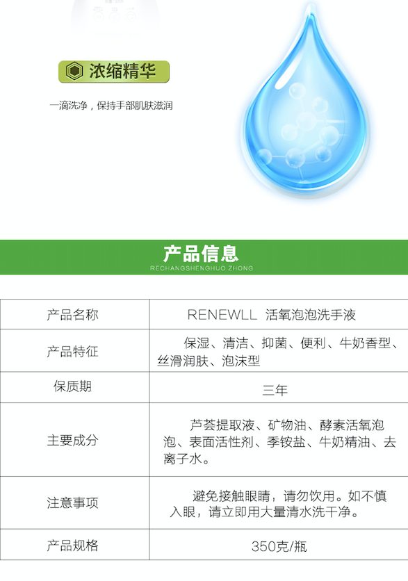 润友RENEWLL泡沫洗手液抑菌消毒儿童宝宝孕妇婴儿家用泡沫型350g