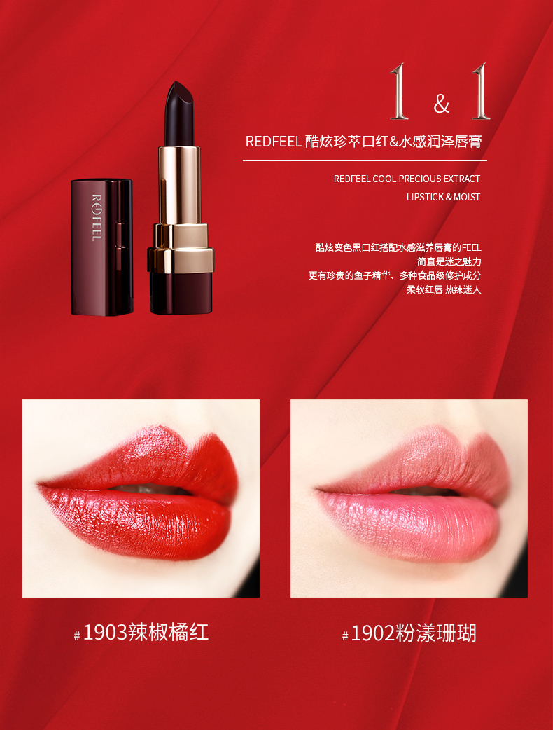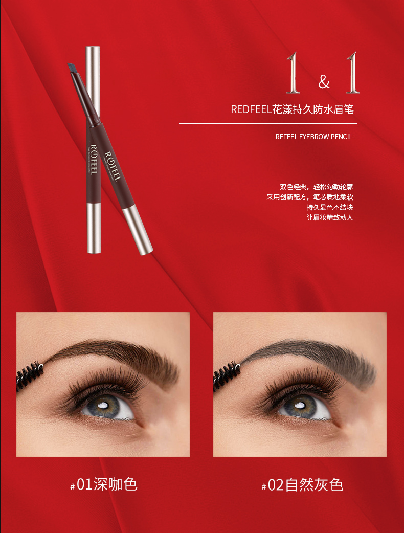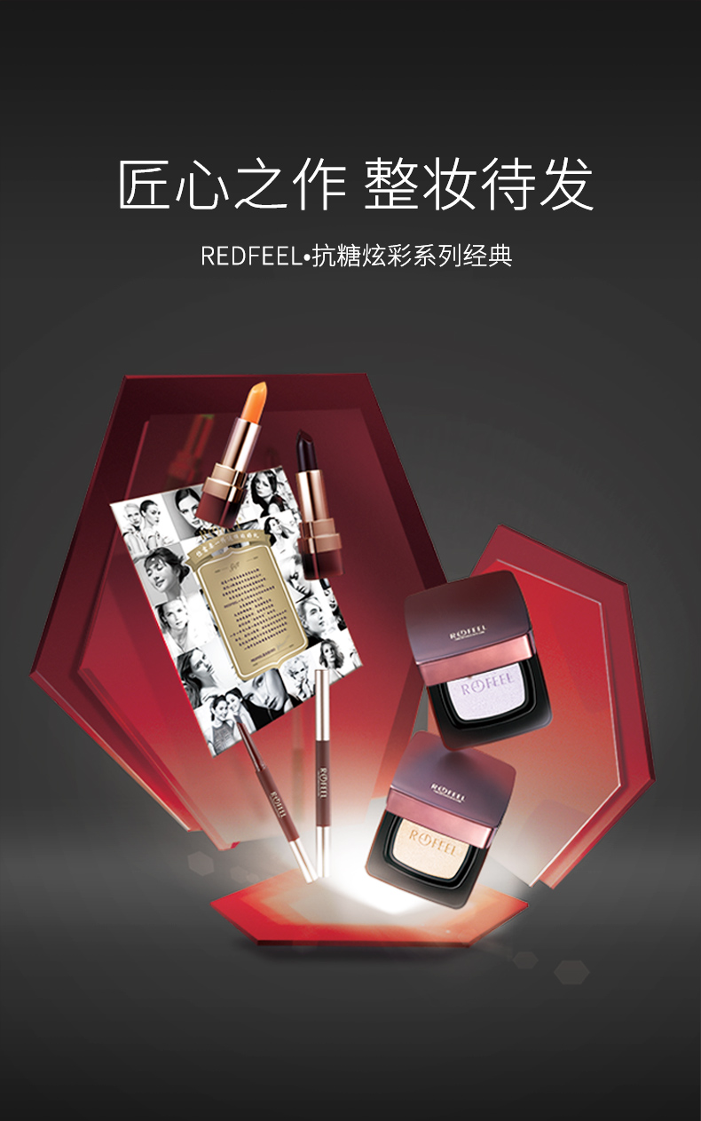 REDFEEL芮斐尔彩妆4件套装 口红(2色)+眉笔(咖色)+气垫(象牙白)=4支