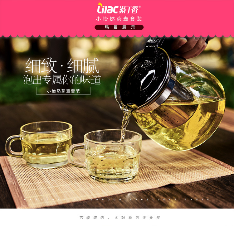 岁月芳华喜满多紫丁香茶壶玻璃泡茶壶套装特价过滤不锈钢茶壶礼盒活动礼品