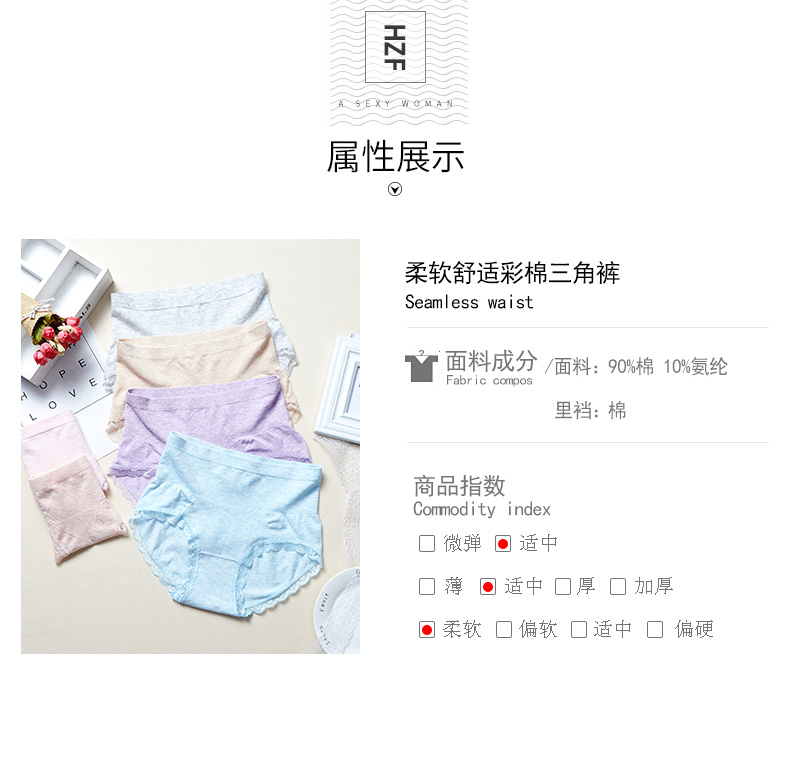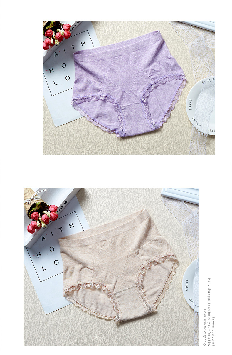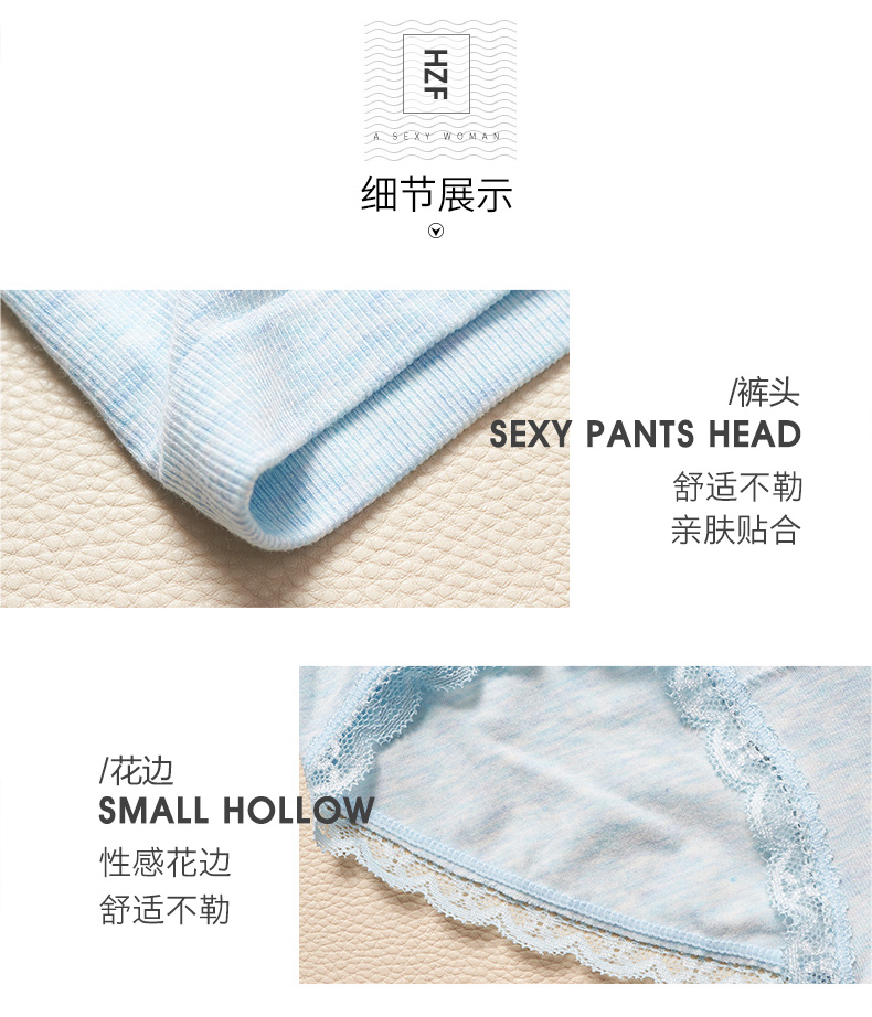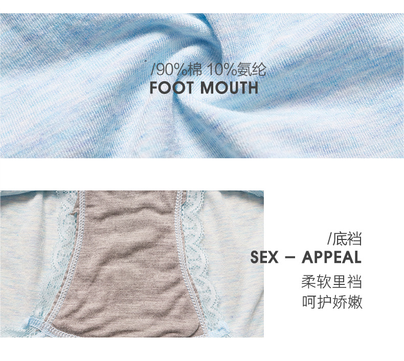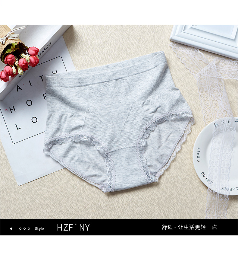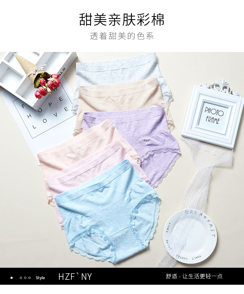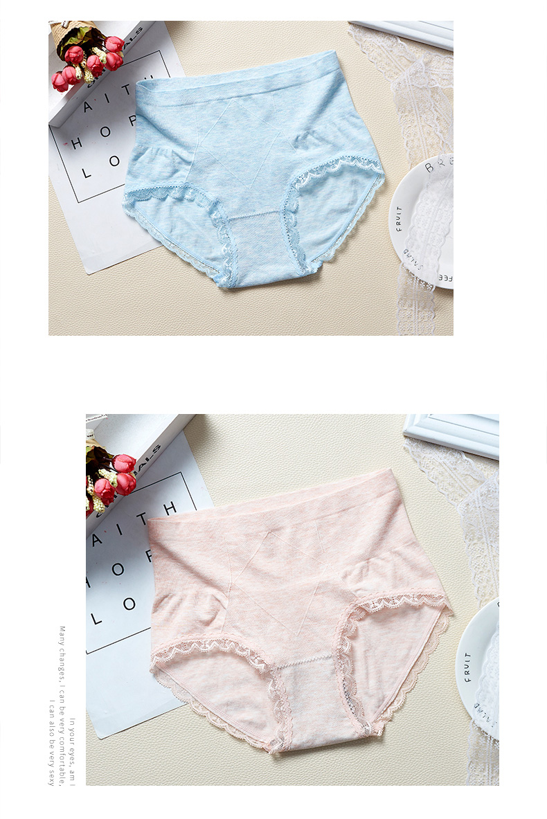 【3条装】菲界无缝彩棉性感蕾丝超弹内裤中腰无痕纯棉裆女内裤19004