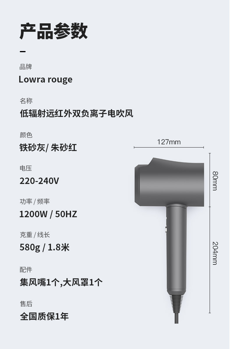 lowra rouge罗拉如炬远红外线低辐射电吹风 铁砂灰