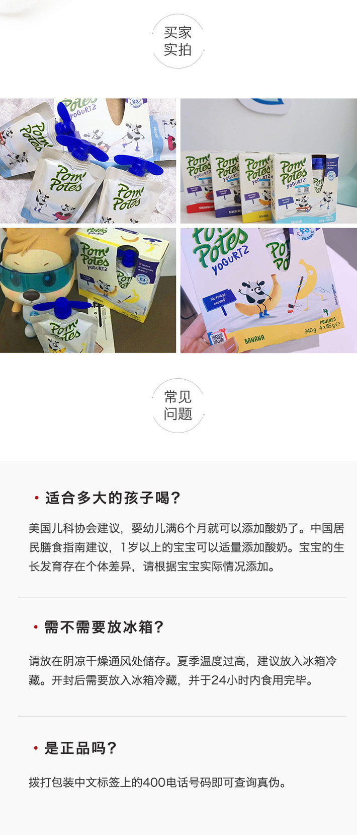 法国Pom'Potes法优乐儿童常温酸奶宝宝辅食零食酸奶85g*4袋蓝莓