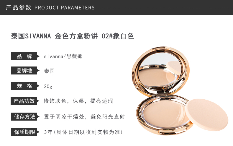 泰国 sivanna 金色方盒粉饼 02#象白色