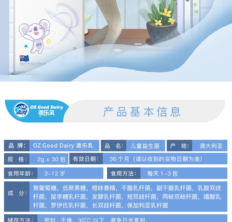【益生菌】澳洲澳乐乳OZgoodDairy儿童益生菌2g*30包/盒