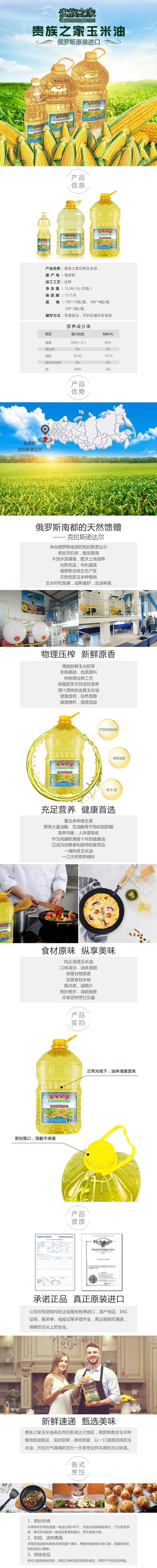 俄罗斯贵族之家压榨玉米油5L