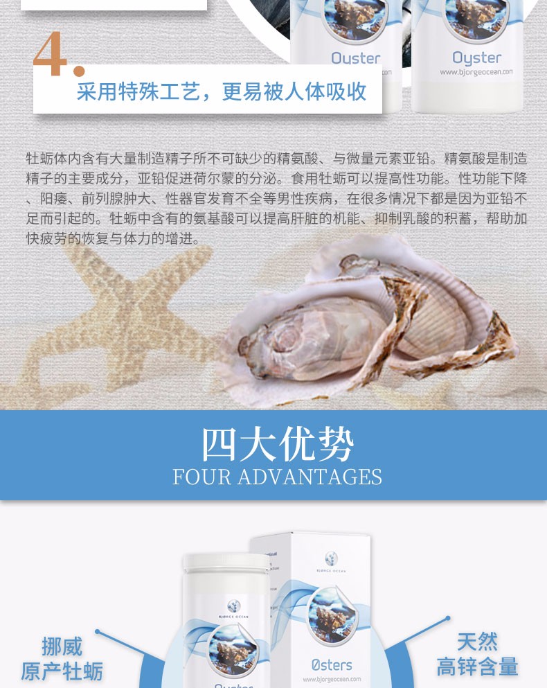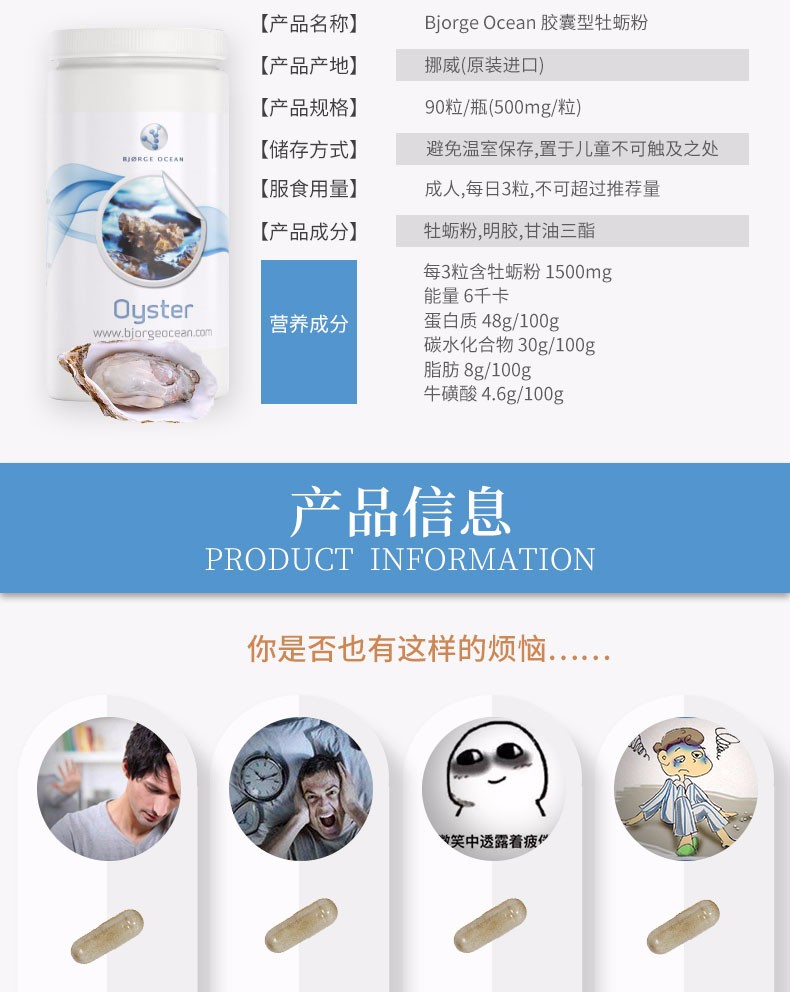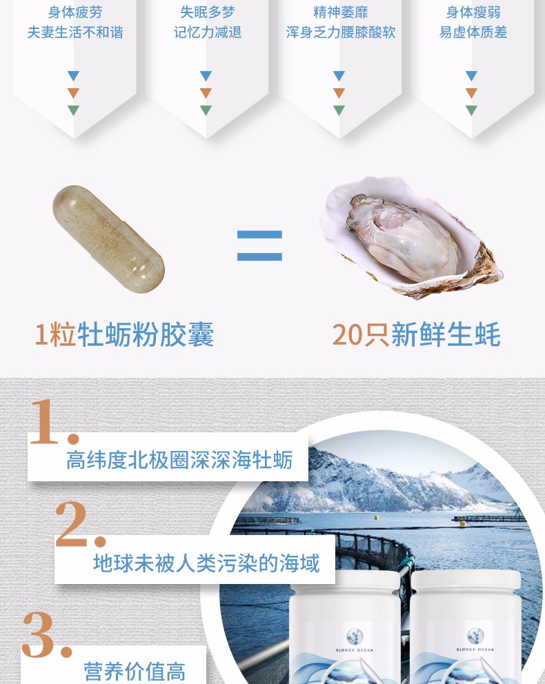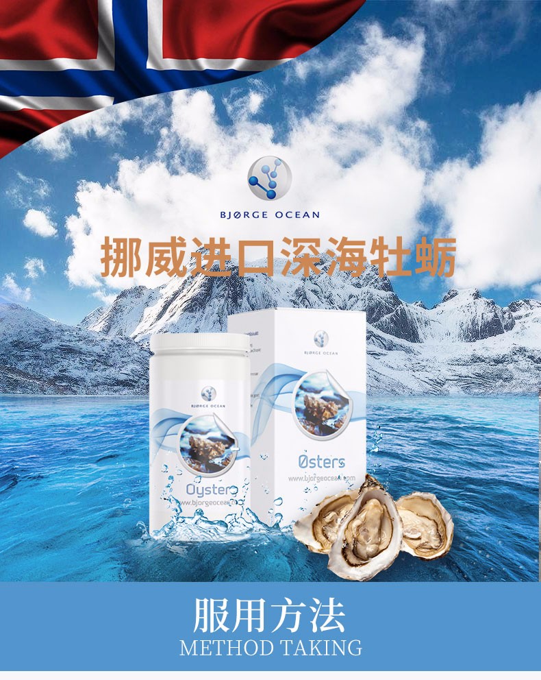 挪威Bjorge Ocean深海牡蛎精华益肾健脾牡蛎粉肽锌片90粒