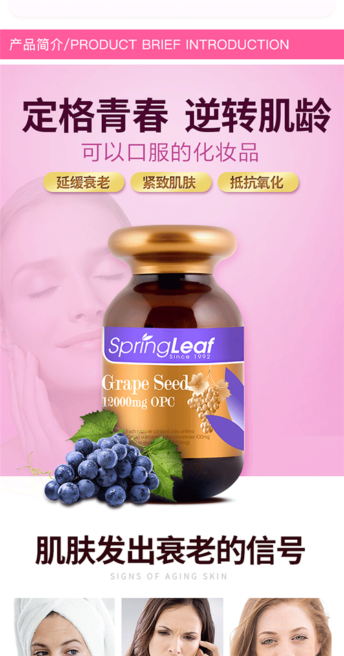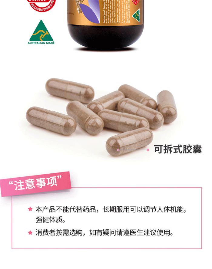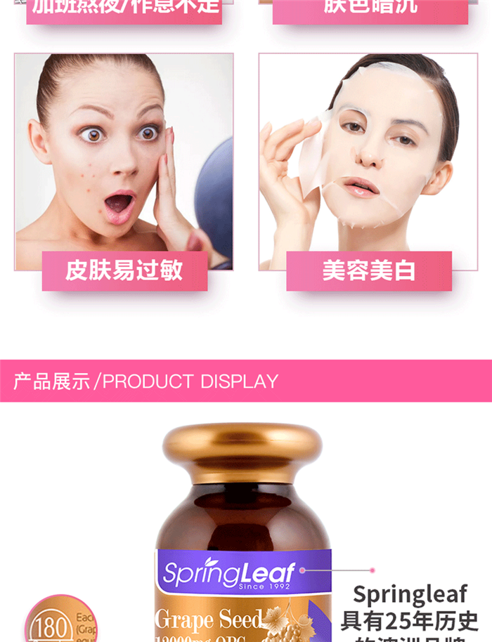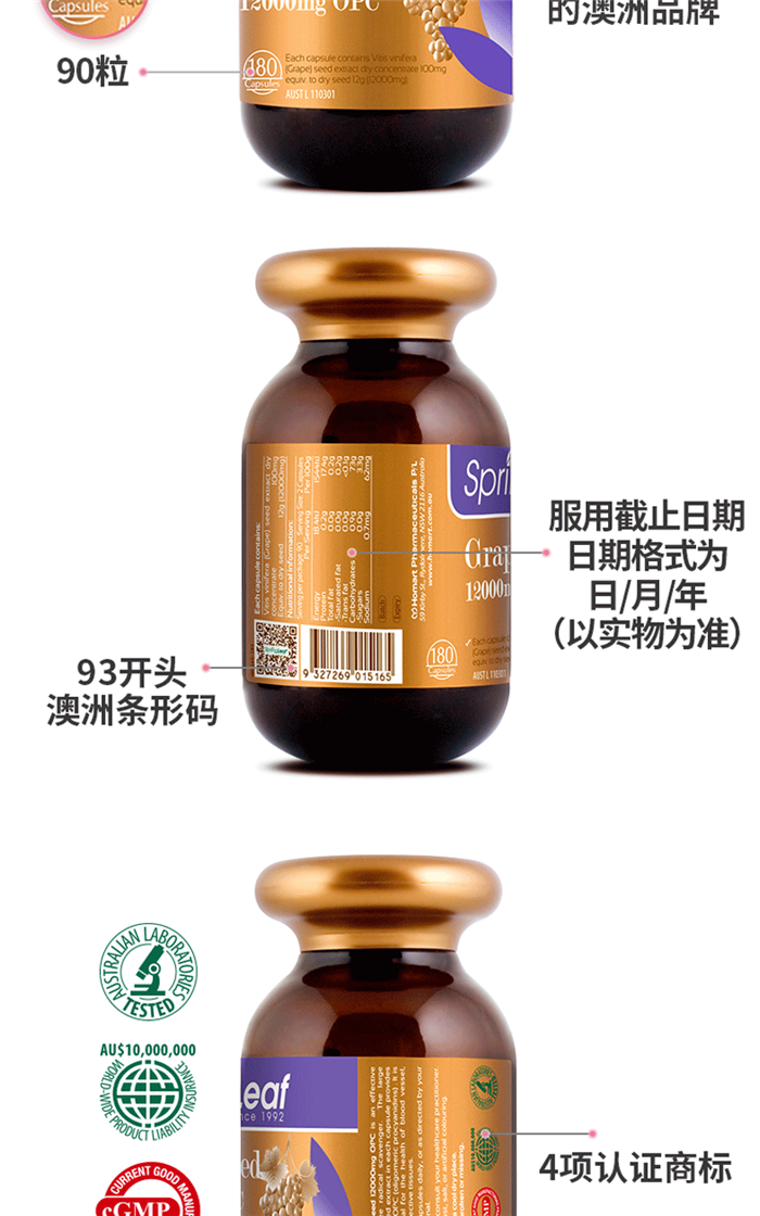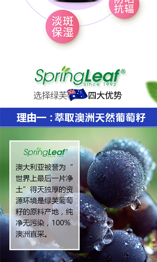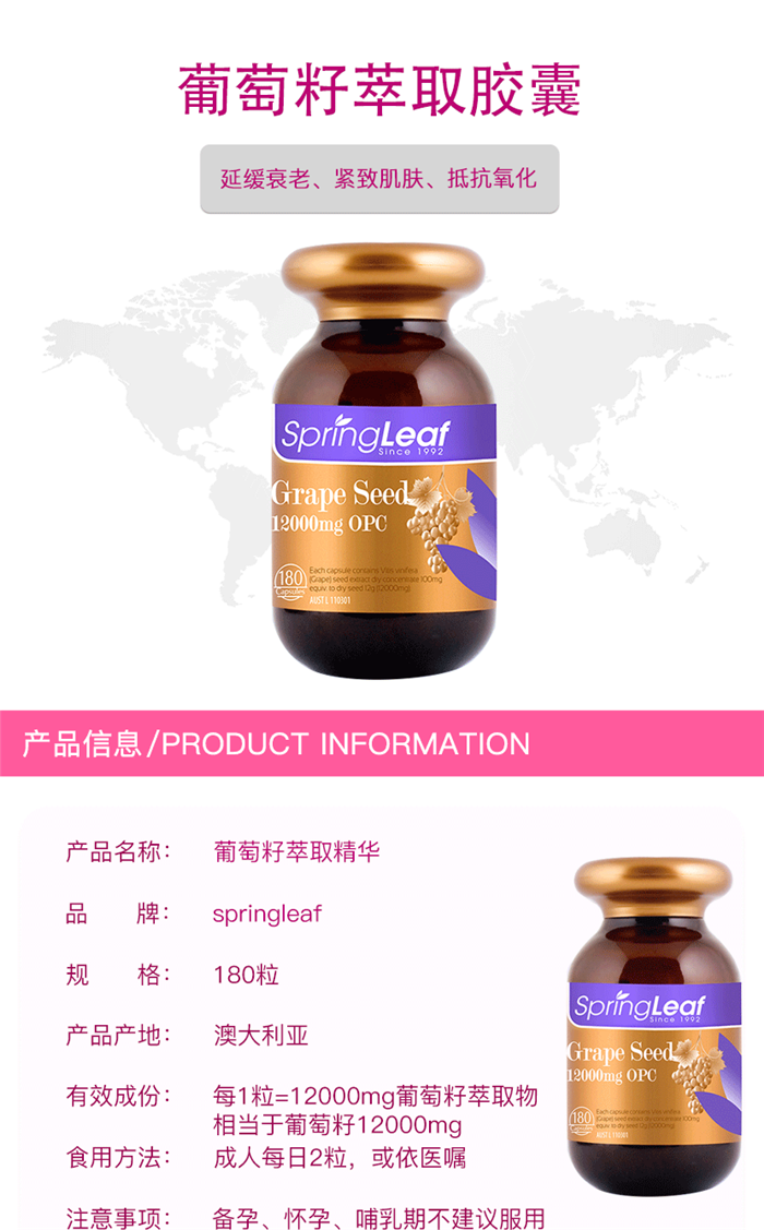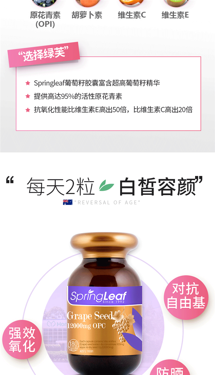 澳洲springleaf绿芙葡萄籽花青素精华胶囊 180粒
