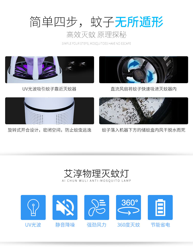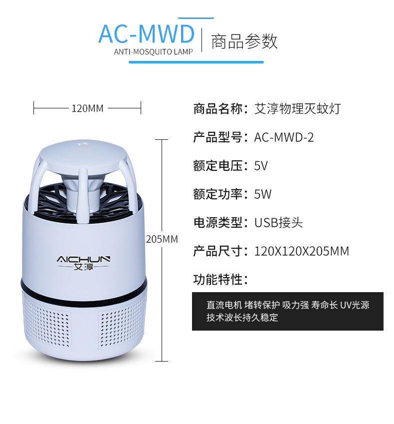 艾淳 (AICHUN)灭蚊灯usb光触媒灭蚊灯家用灭蝇驱蚊器灭蚊器吸入式捕蚊灯AC-MED-2