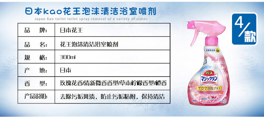 您所在的位置:首页 > 家庭清洁  > 家庭环境清洁 > 其它清洁用品  > 花王浴室浴缸清洁剂 新款 380ml 绿色