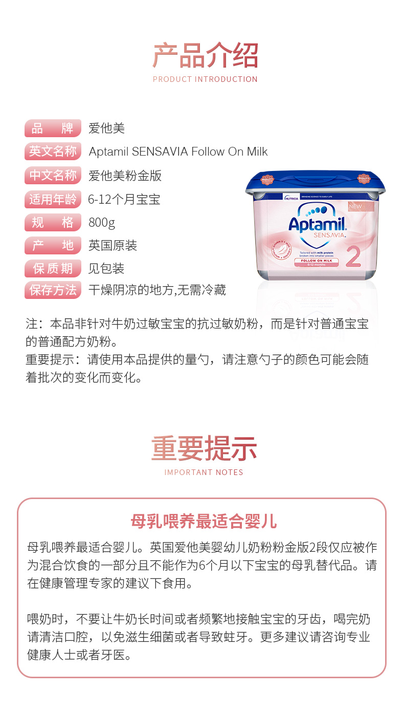 您所在的位置:首页 > 母婴用品  > 奶粉 > 婴幼奶粉  > 【英国直邮】英国爱他美Sensavia粉金版2段800g