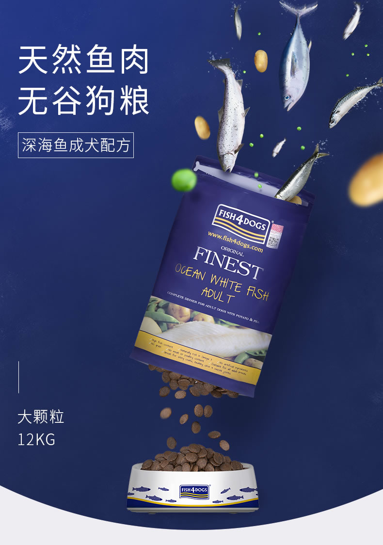 海洋之星天然无谷抗敏感深海鱼幼犬美毛配方(大颗粒) 12KG