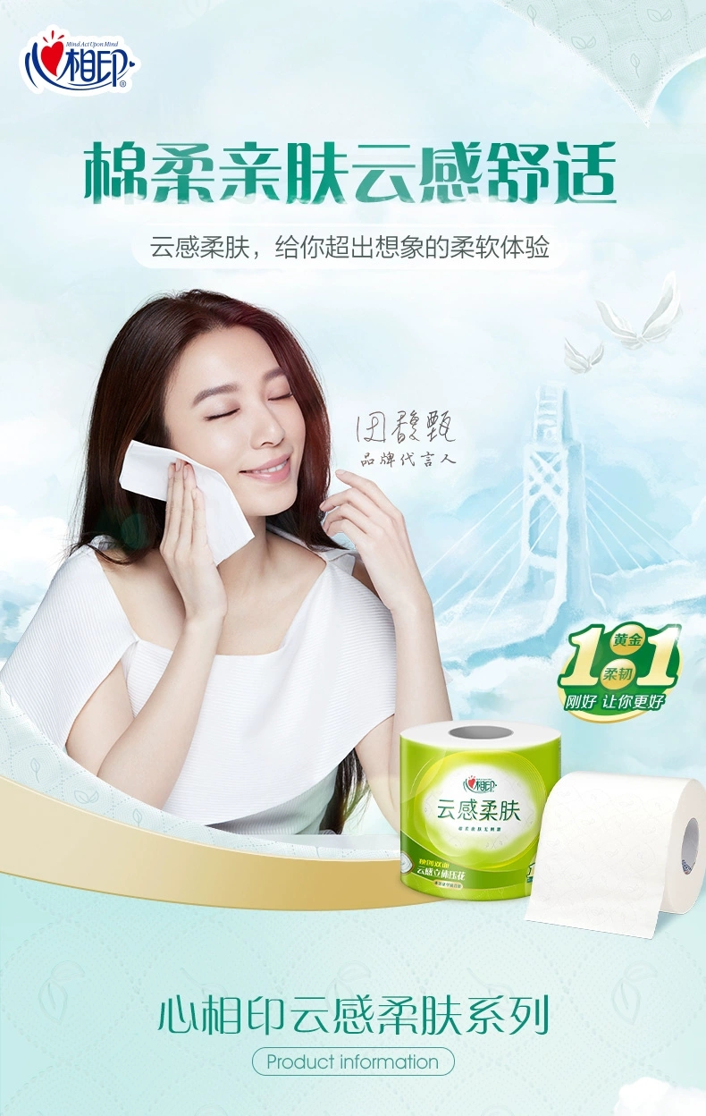 心相印卷筒纸云感柔肤4层家用柔韧卷纸24卷手卷纸无香原生浆高端