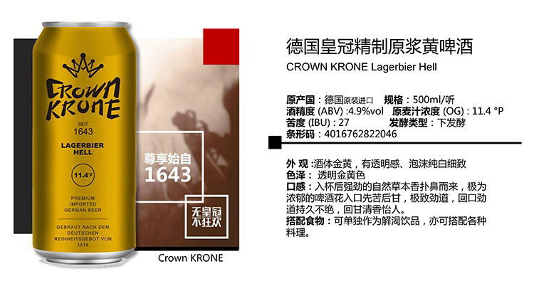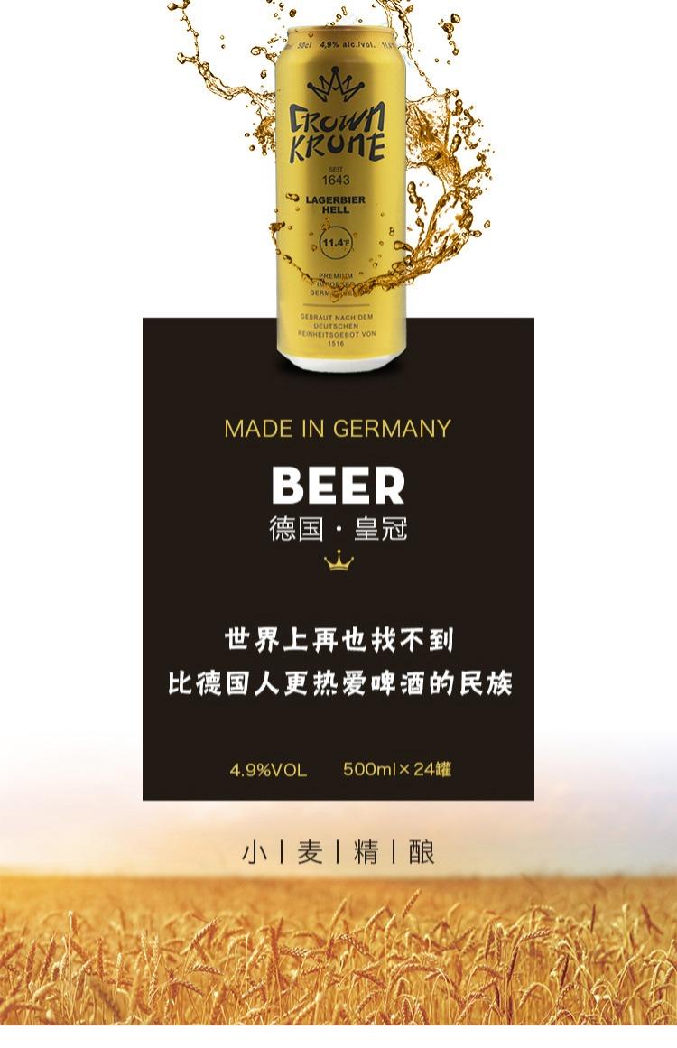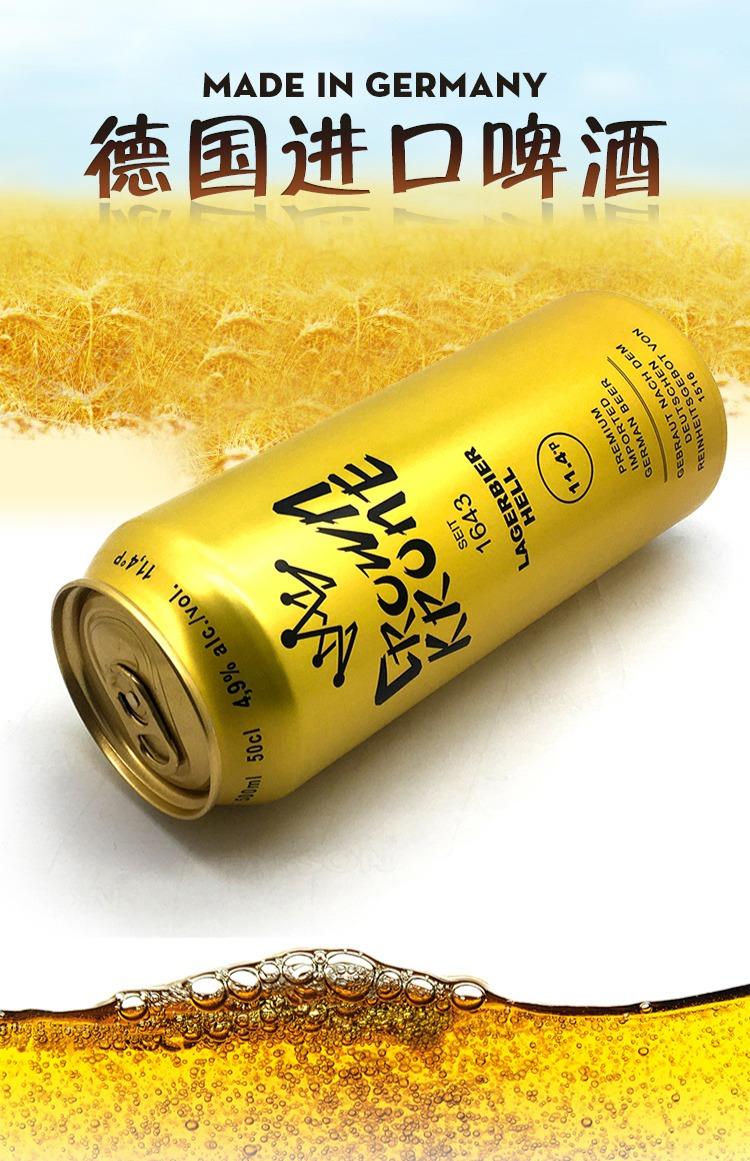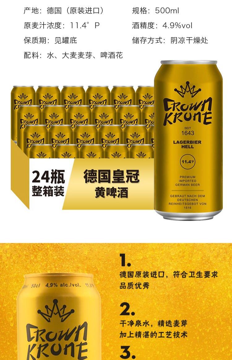皇冠精致原浆黄啤酒500ml*24听 德国原装进口