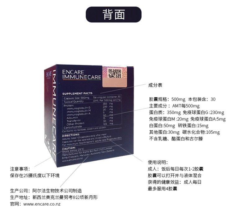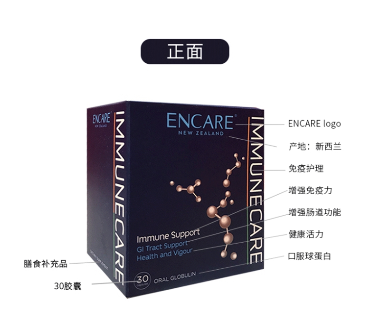 【香港直邮】新西兰Encare 安康尔 口服耳牛球蛋白粉胶囊 30粒 成人
