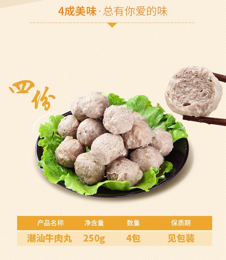 喜得佳正宗潮汕牛肉丸250g*4包