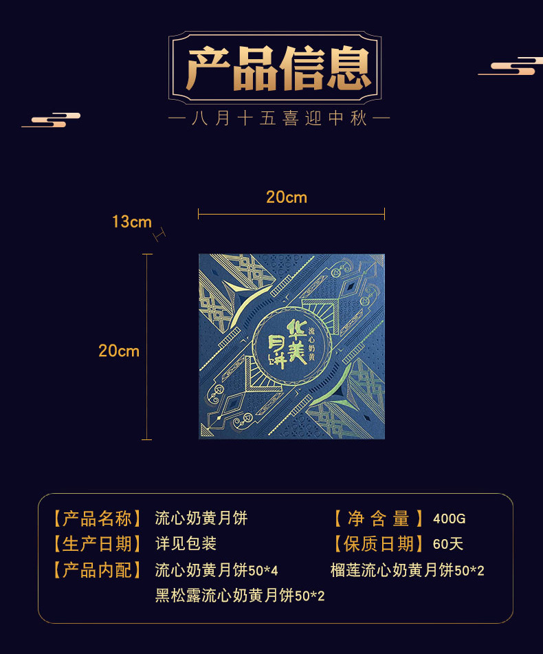 华美月饼流心奶黄月饼正方形200*200*130mm400g