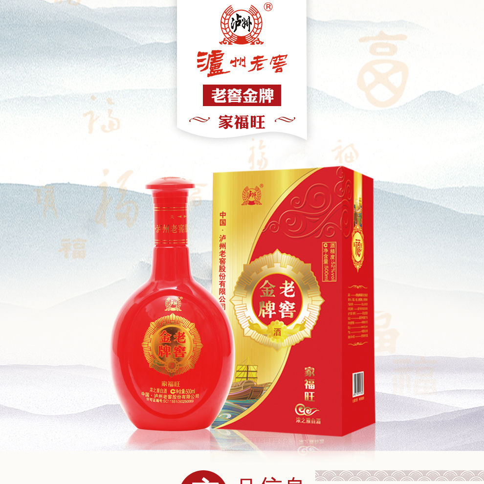 您所在的位置:首页 > 休闲食品  > 白酒 > 白酒  > 泸州老窖老窖金牌 家福旺浓之雅白酒 500ml*6瓶整箱装(配3个礼品袋)