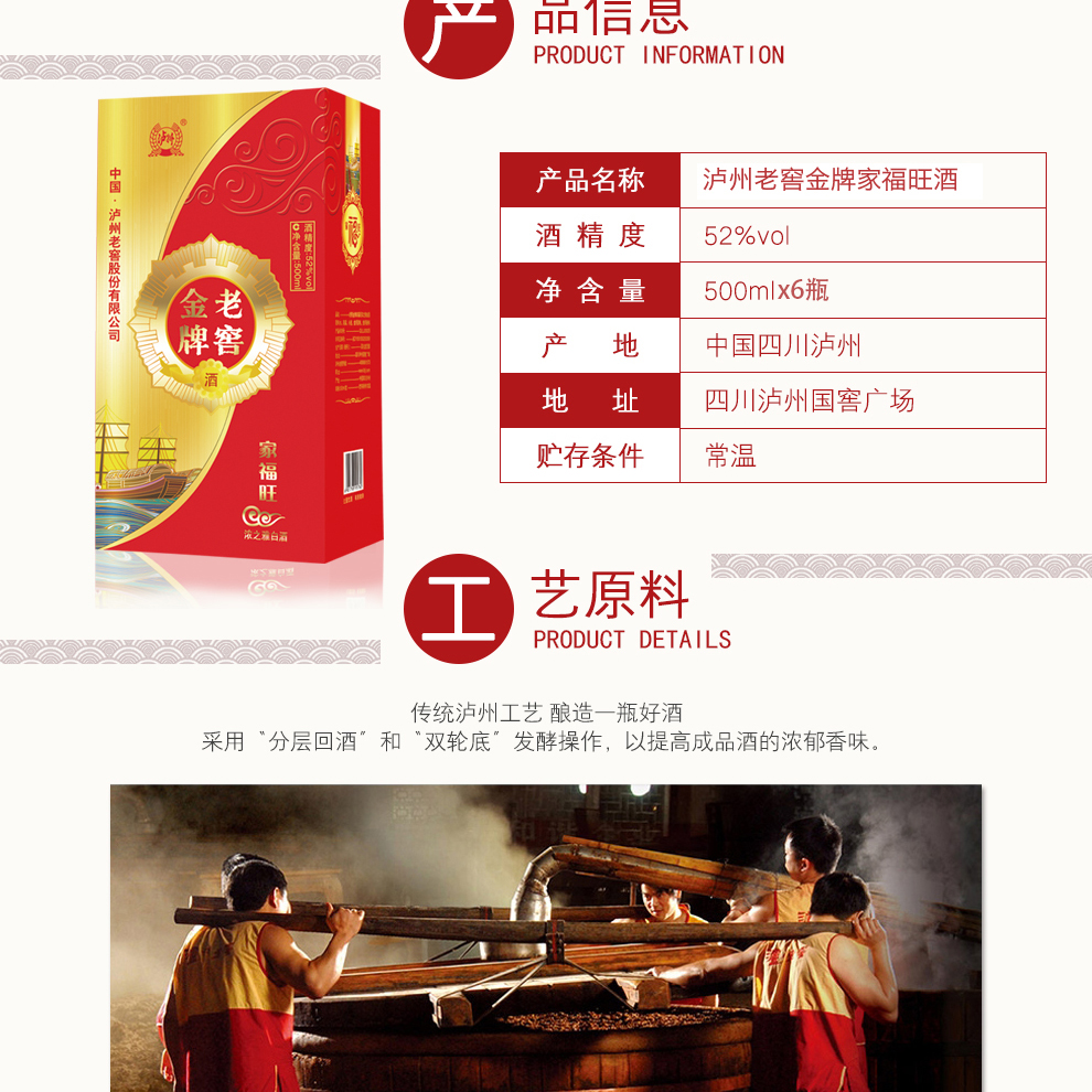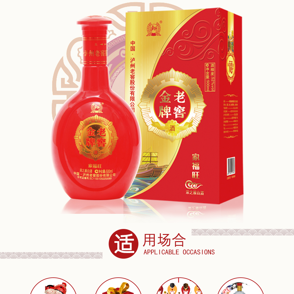 泸州老窖老窖金牌 家福旺浓之雅白酒 500ml*6瓶整箱装(配3个礼品袋)