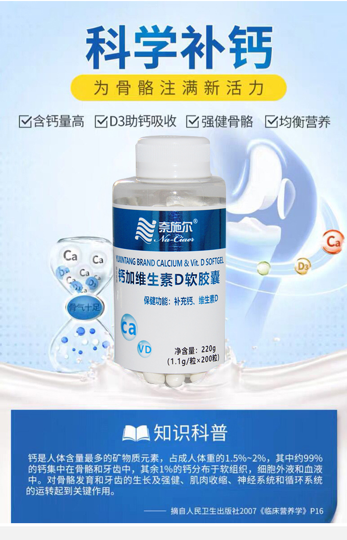 中国奈施尔钙加维生素D软胶囊200粒/瓶