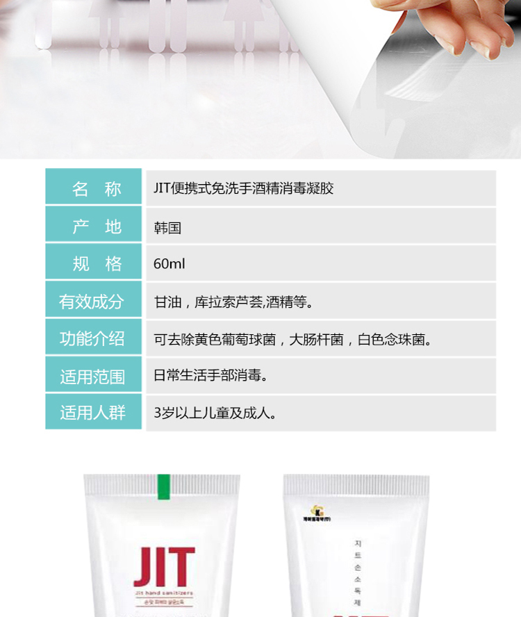韩国进口JIT免洗手酒精消毒凝胶60ml