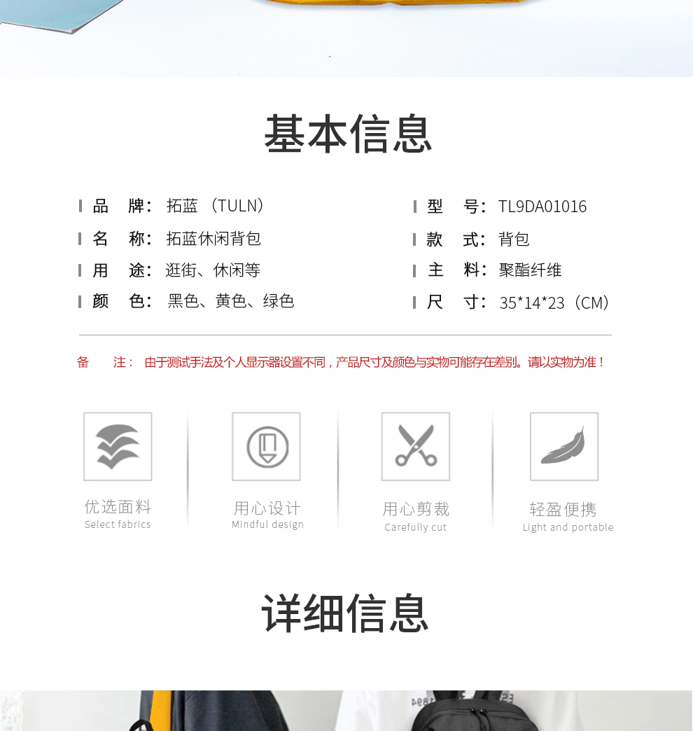 您所在的位置:首页 > 服饰箱包  > 功能箱包 > 休闲运动包  > 拓蓝(TULN)休闲背包男女情侣双肩包简约便携休闲旅游包旅行包学生书包 黄色